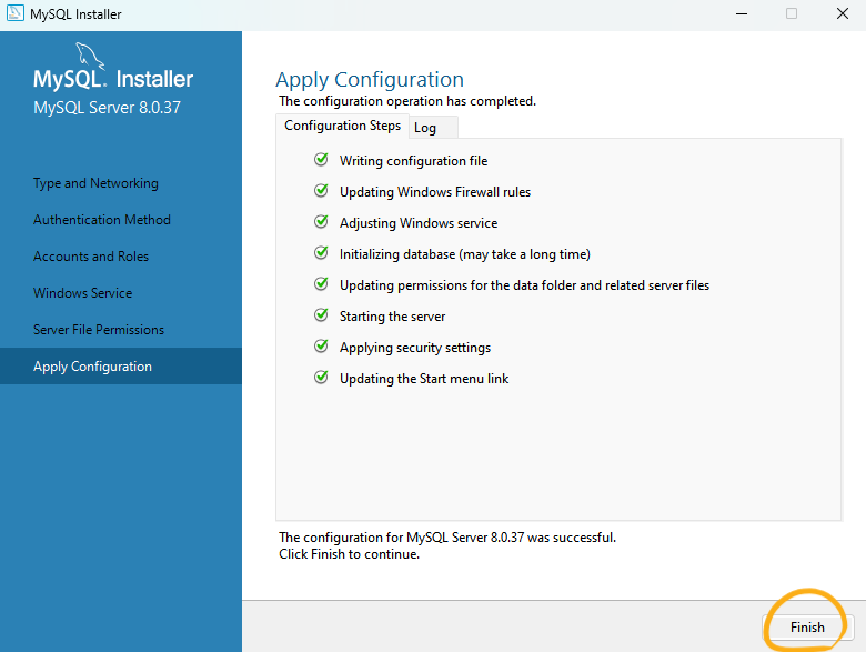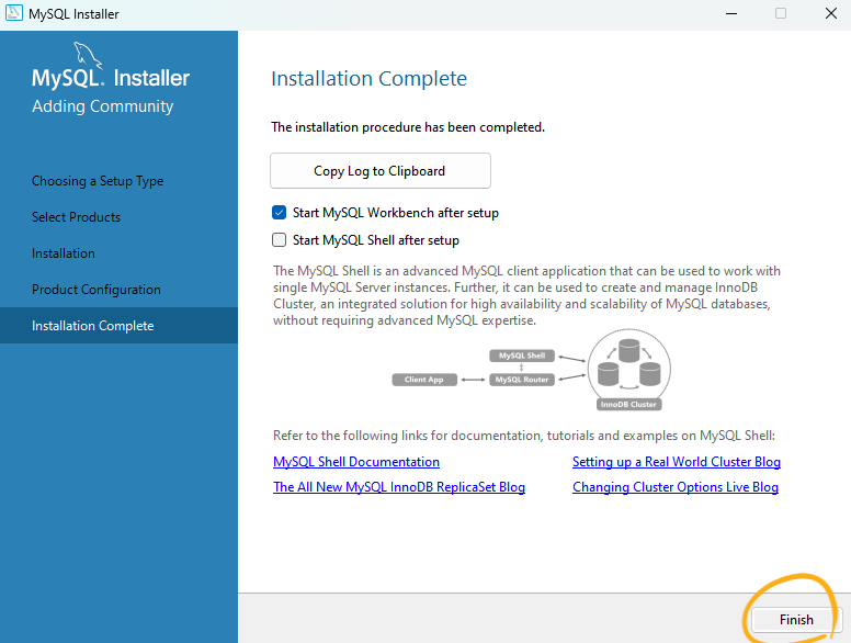 - MySQL Server에 대한 환경 설정이 완료되었고, 만약 다른 Product를 추가로 선택했다면 해당 Product에 대한 환경설정도 해주어야 한다.
