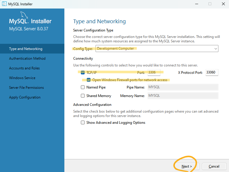 - 기본 설정을 확인한 후 Next를 누른다. 만약 포트 충돌이 일어난다면 관련 프로그램이 이미 설치되어 있는지 확인한다.