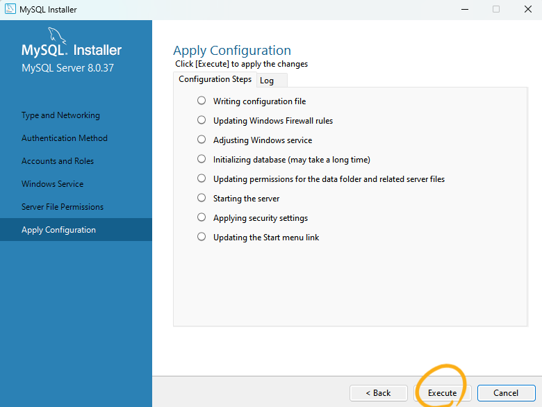 - Apply Configuration 마지막 적용 단계다. Execute를 누른 후 완료가 되면 Finish를 누른다.