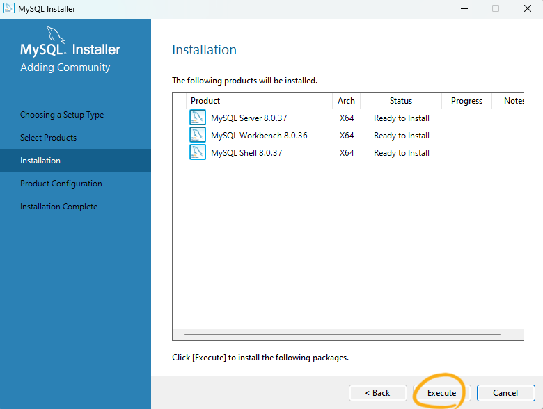 - Installation에서는 목록을 확인하고 Execute를 누르면 설치가 시작된다.