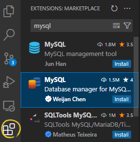 - 다양한 Extension 중에 Weijan Chen의 MySQL을 선택한다.