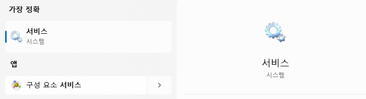 Windows 작업 표시줄의 검색창에 '서비스'를 입력하고 서비스 관리 도구를 연다.