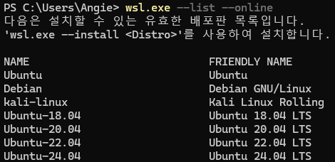 - 다음 명령어를 통해 설치 가능한 배포판 목록을 확인한다.