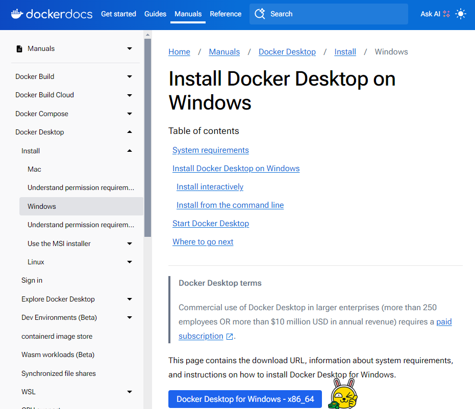 ① Docker Desktop 설치 페이지로 이동해 설치 파일을 다운로드 한다.