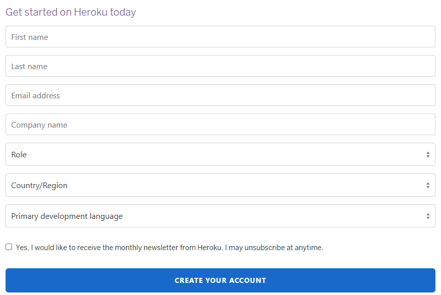 - Heroku 웹사이트에 접속해 무료 계정을 생성한다.