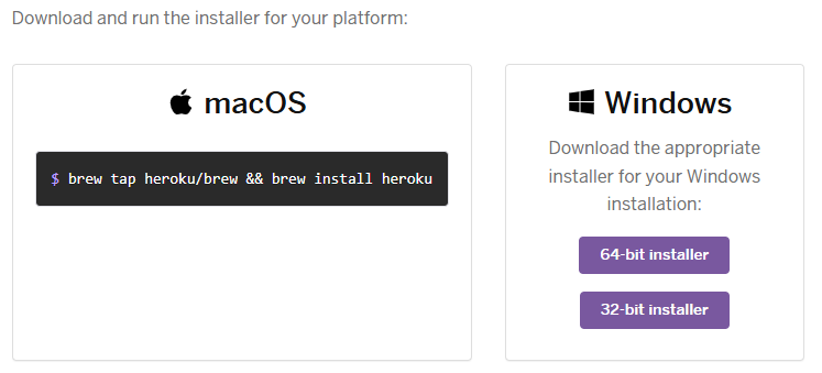 - Heroku의 개발자 센터에서 Heroku CLI를 설치한다.