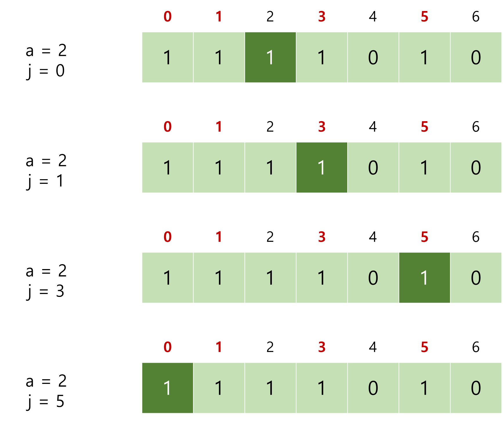 temp[(a+j) % 7] = 1 # 거기에 a를 더하고 나머지 연산을 한다.