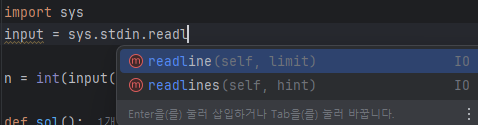 코드 작성 시 자동으로 제안되는 완성 목록을 불러온다.