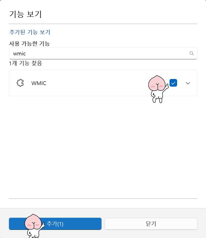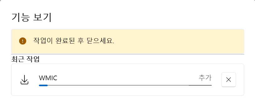 - WMIC를 검색하고 찾은 기능을 체크하여 추가를 누른다.