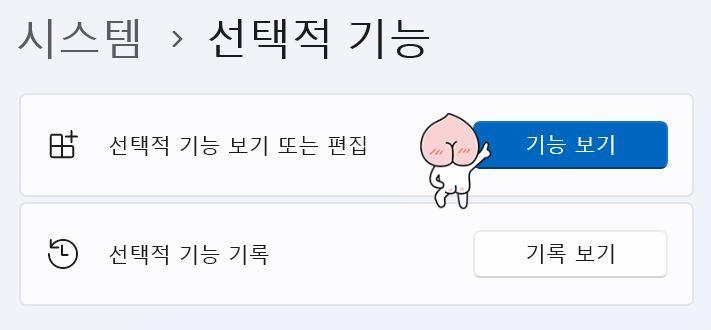 - 선택적 기능에서는 Windows에서 기본적으로 설치되지 않은 기능들을 추가하거나 제거할 수 있다.