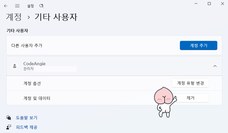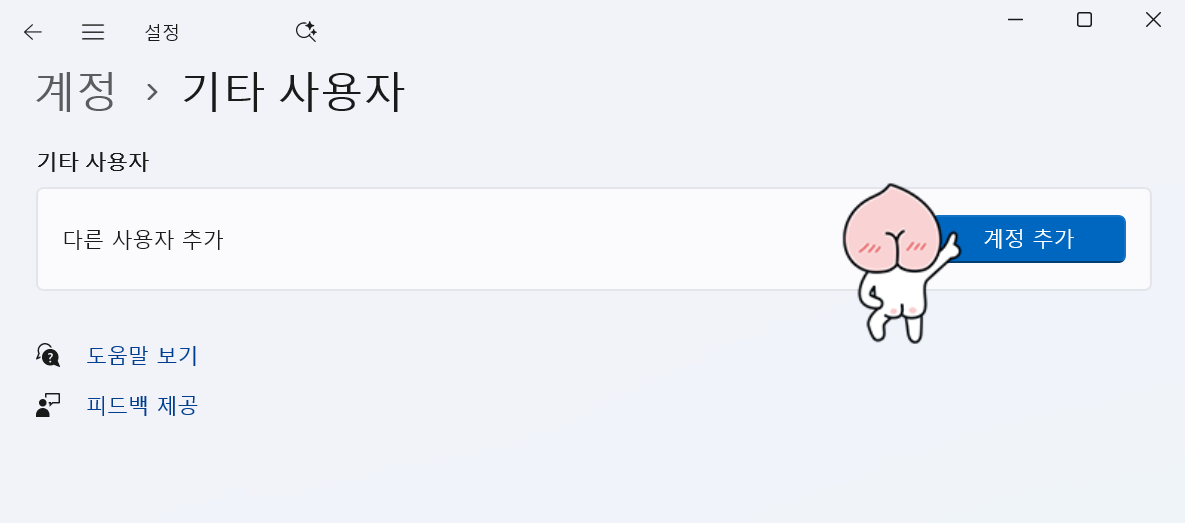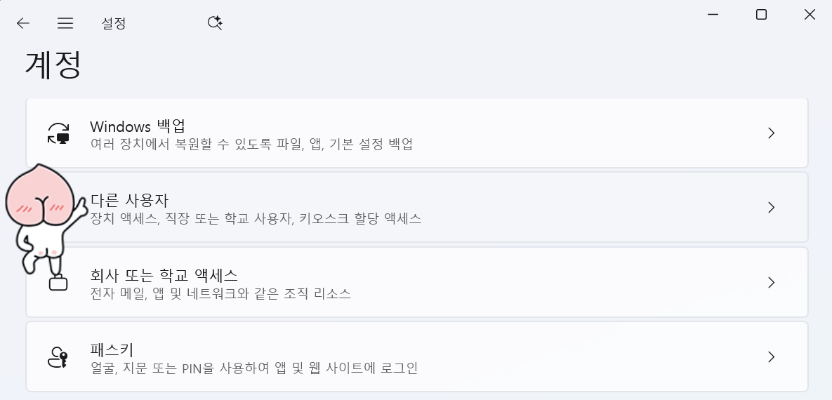 - 설정에 들어가 계정탭의 다른 사용자를 선택한다.