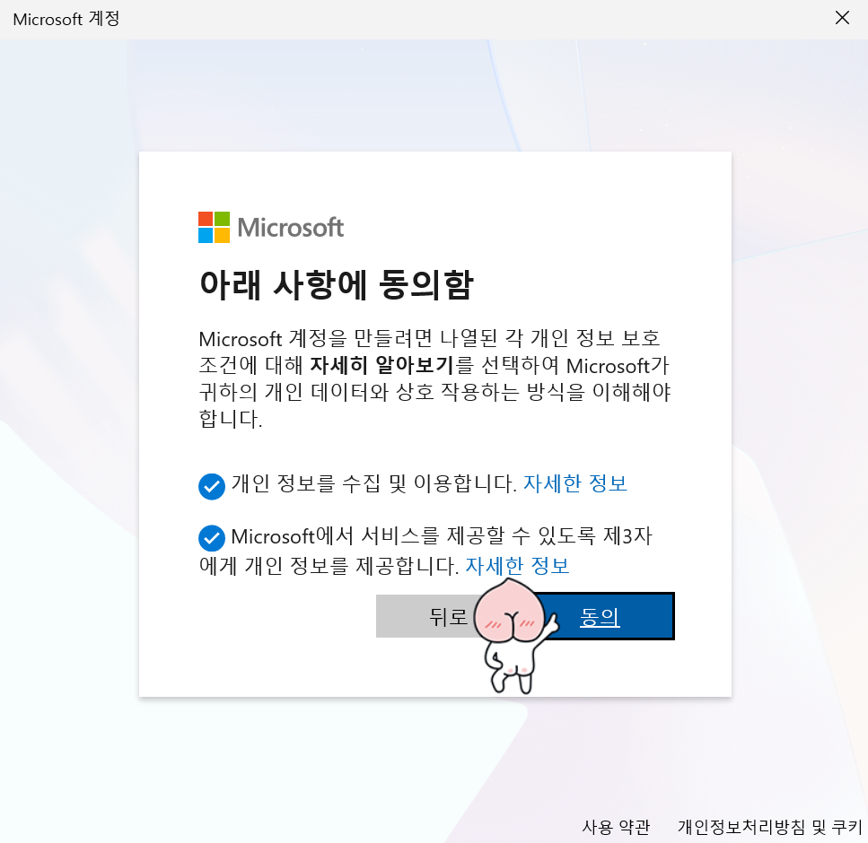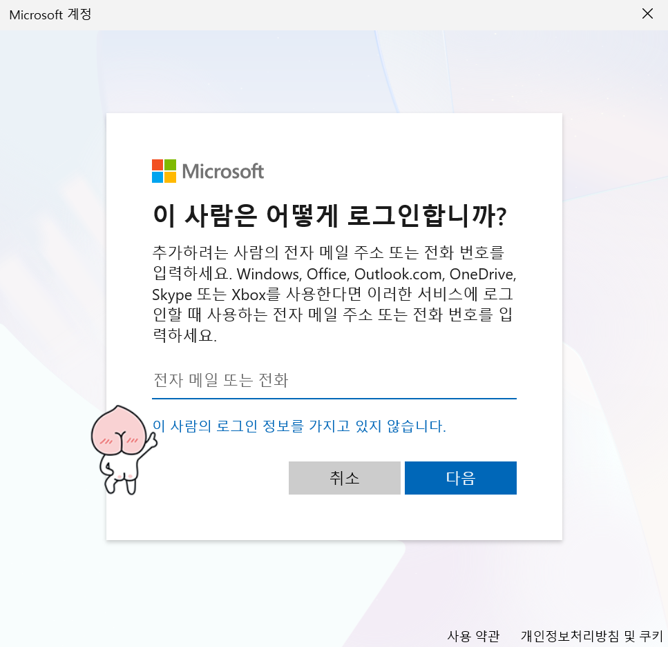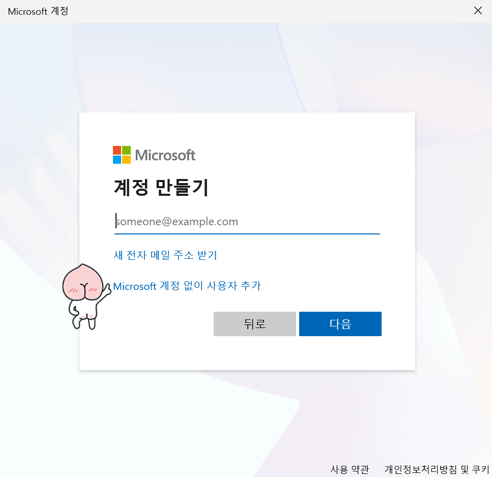 - 계정을 생성할 때는 Microsoft 계정을 사용하지 않고 계정을 추가한다.