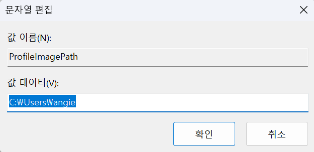 - ProfileImagePath 값을 찾아 더블 클릭한다. (혹은 마우스 오른쪽 클릭 > 수정 선택)