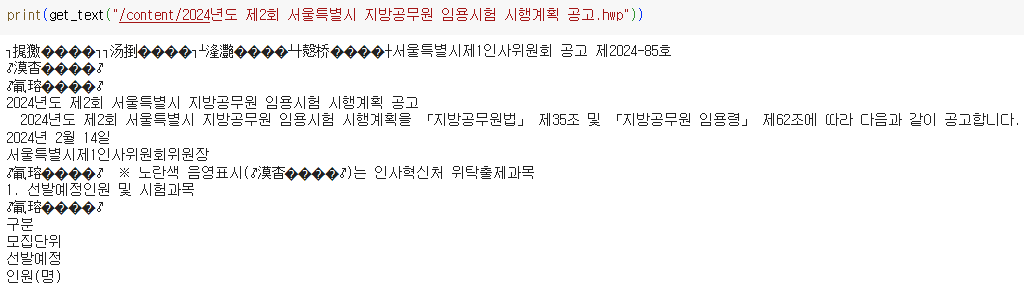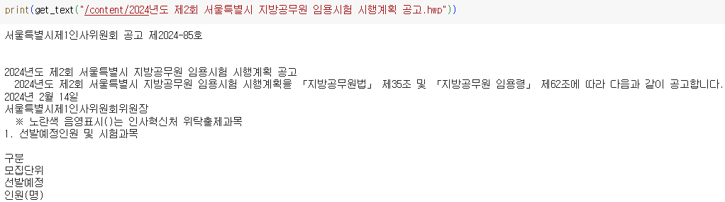 Colab에서는 리눅스 OS를 사용하기 때문에 pyhwp로 아래한글 문서를 읽기가 쉽지 않았다.