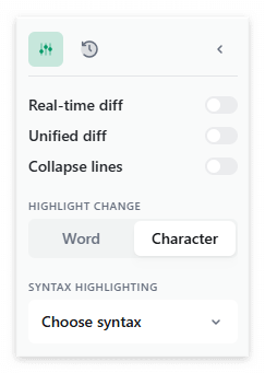 - Highlight Change의 Word 버전은 단어 단위로 변경된 부분을 블록으로 표시하며, Character 버전은 스펠링 하나하나를 비교하여 변화를 나타낸다.