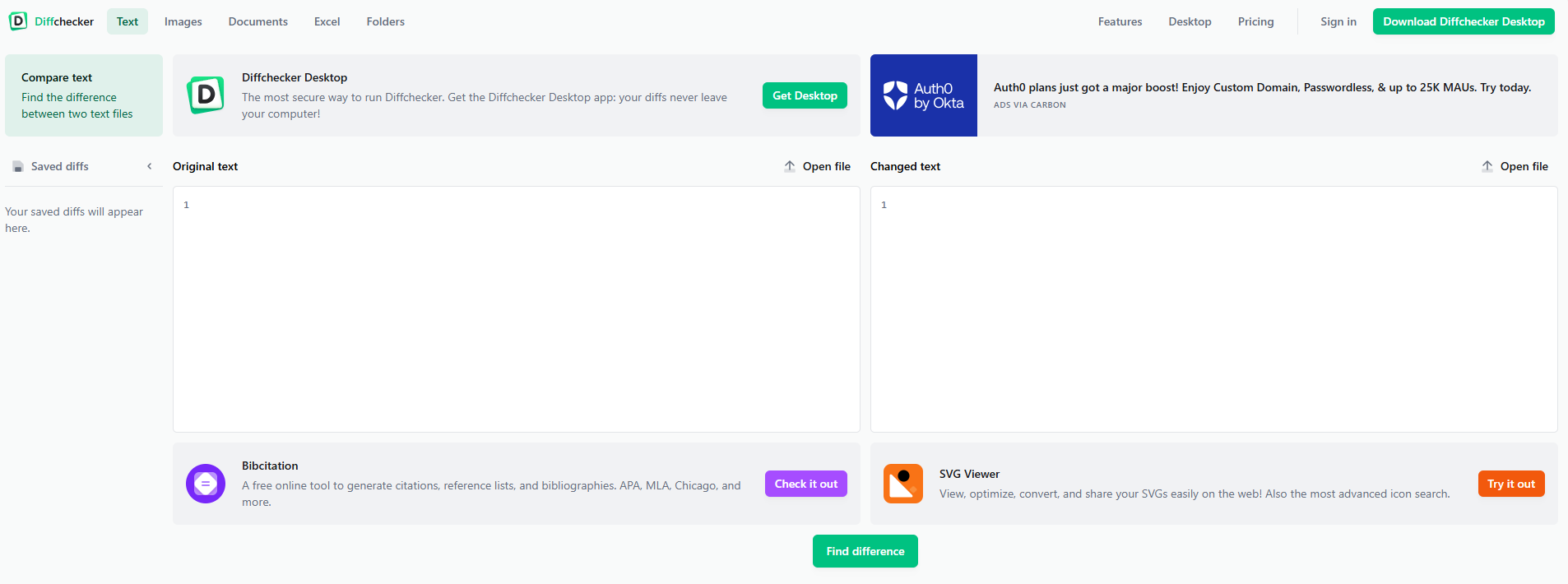 Diffchecker will compare text to find the difference between two text files. Just paste your files and click Find Difference!