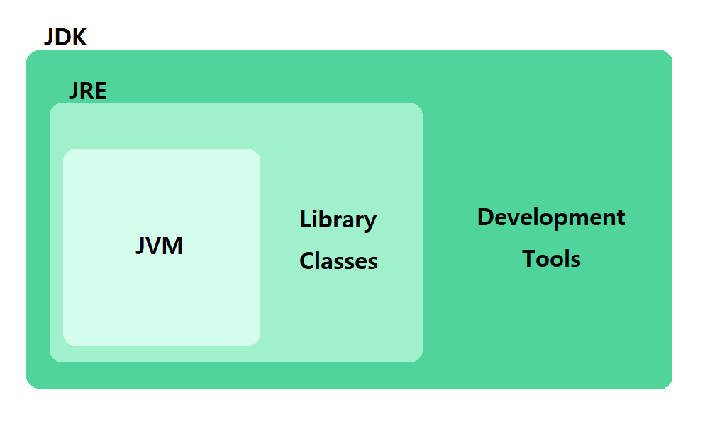 - JDK는 JRE(Java Runtime Environment)과 Java Development Tools를 포함한다.