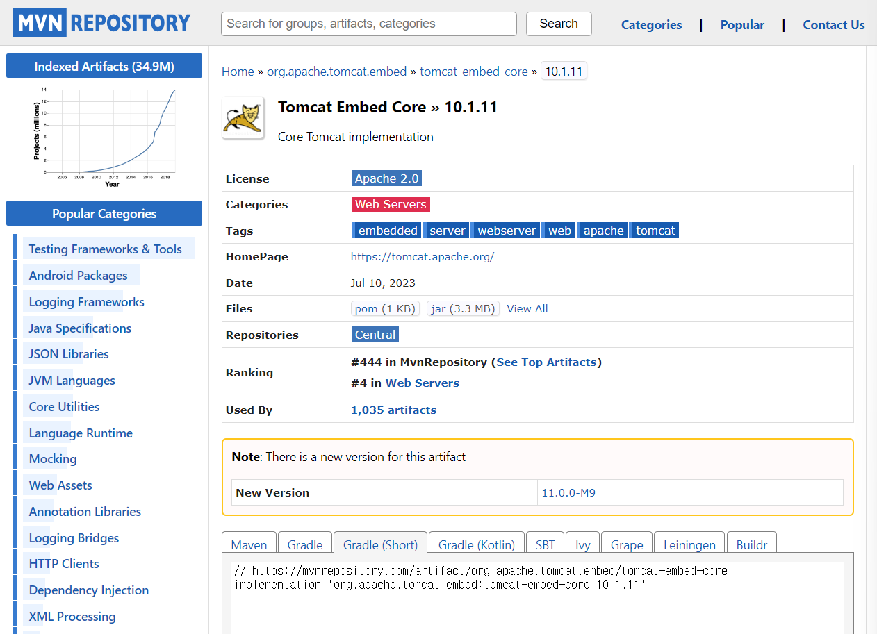- 이러한 의존성은 mvn repository 사이트에서 검색 가능하다. (https://mvnrepository.com/)
