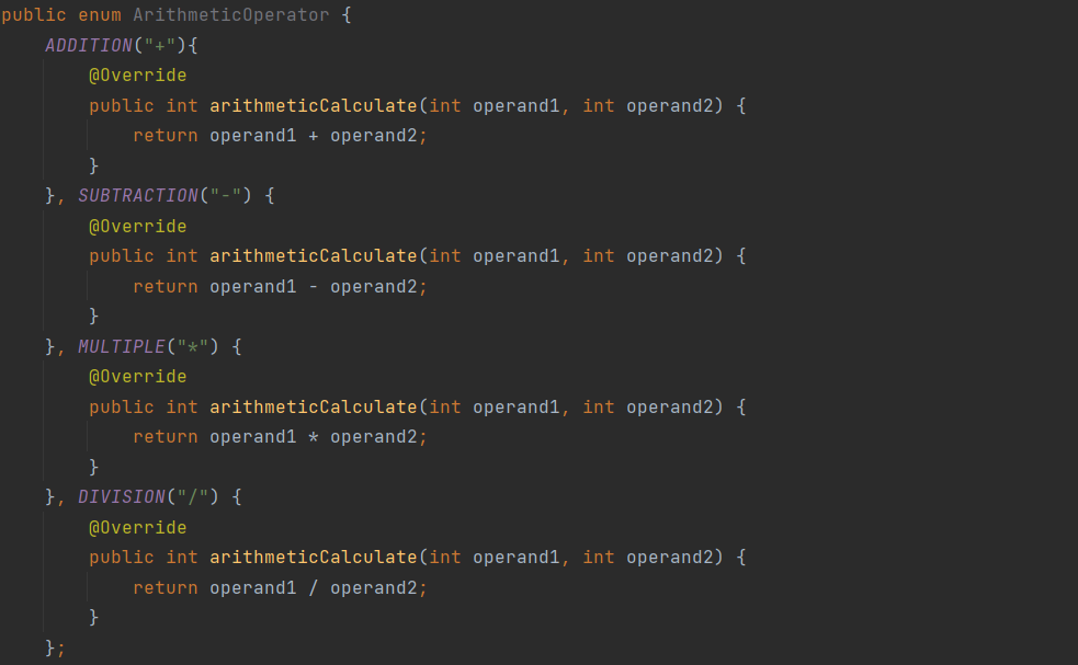 - enum에게 작업을 위임하여 최종적으로 ArithmeticOperator가 작업을 하도록 할 수 있다.