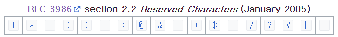 - 예약 문자(예약어)에는 !, *, ', (, ), + 등이 있다.