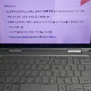 - 컴파일 시점이 아닌 런타임 시점에 동적으로 특정 클래스의 정보를 추출해낼 수 있는 프로그래밍 기법이다.