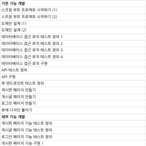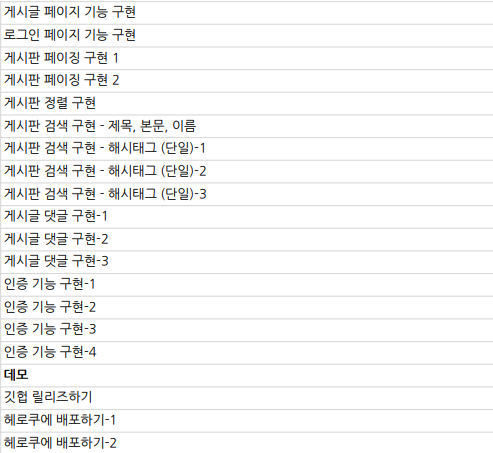 - 게시판 프로젝트의 Project backlog에 강의 커리큘럼 리스트를 추가한다.